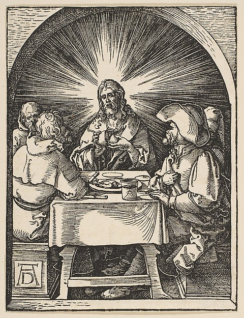 | Albrecht Durer, The Disciples Recognize Jesus Woodcut, from The Small Passion German, c. 1510 New York, Metropolitan Museum of Art |